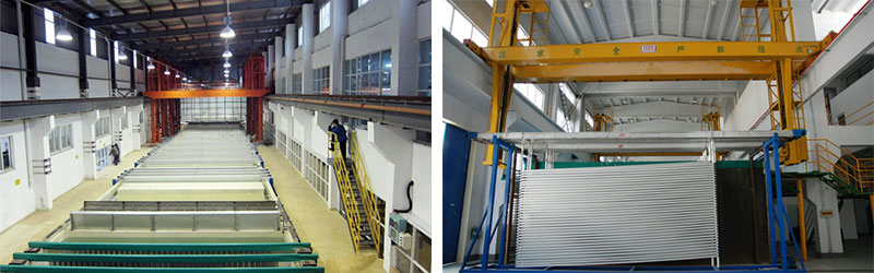 佳華鋁業(yè)自成立以來就不斷投入巨資于鋁型材的表面處理方面,先后建有世界先進水準(zhǔn)的2條氧化著色生產(chǎn)線和1條臺灣電泳表明處理生產(chǎn)線、并在前處理方面裝備 了化學(xué)拋光和機械拋光等設(shè)施,以獲得如鏡面、砂面、綢面、帶金屬光澤的砂面、拉絲面等多種特殊表明形態(tài),配以氧化著色所獲得的銀白色、仿不銹鋼色、香檳 色、古銅色、黑色、黃金色、鈦金色等,使產(chǎn)品能夠滿足多種高級裝飾的要求,其耐用期最高可達(dá)30年之久!