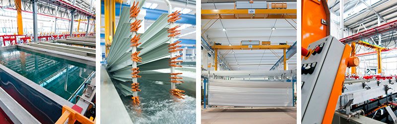 佳華鋁業(yè)為追求更好、更強,從國外引進了多臺國內(nèi)少有的世界高級噴涂設(shè)備,1條彩色靜電粉末噴涂生產(chǎn)線,月產(chǎn)達(dá)1000多噸,采用世界名牌阿克蘇粉、杜邦粉等,并由廠家提供相應(yīng)耐侯年限的“保證書”、其繽紛色彩為各種風(fēng)格的建筑提供了廣闊的選擇空間。