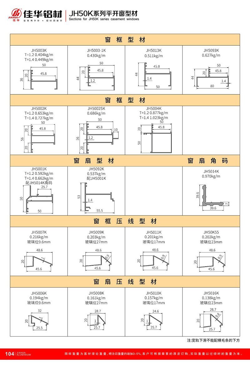 鋁型材規(guī)格型號:JH50K