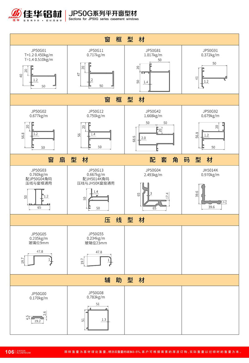 鋁型材規(guī)格型號:JP50G