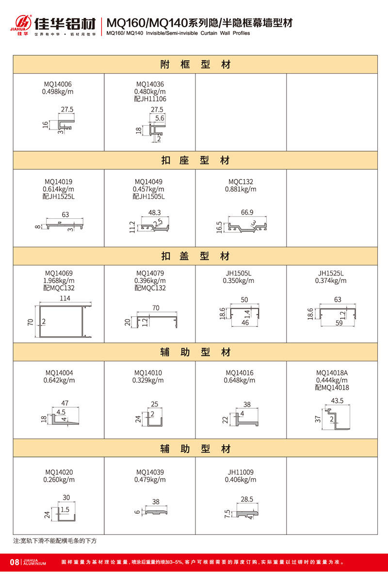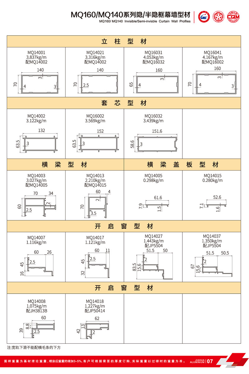 鋁型材規(guī)格型號(hào):MQ160/MQ140 B