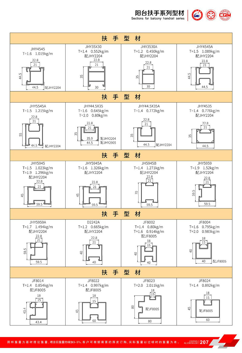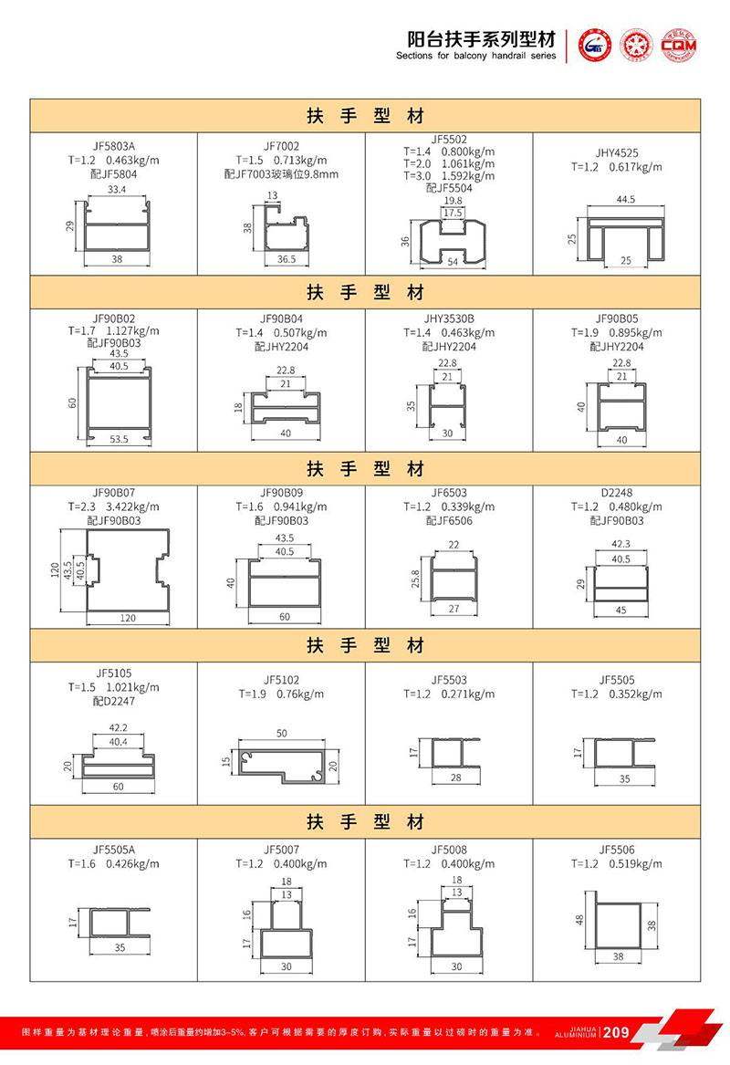鋁型材規(guī)格型號:陽臺扶手 A