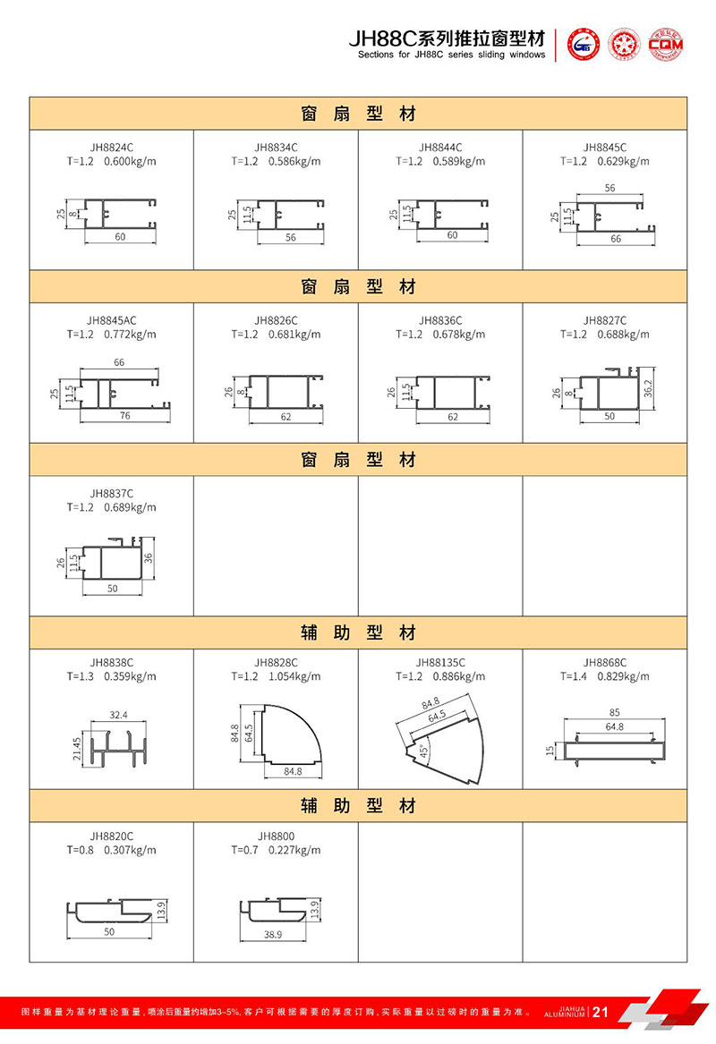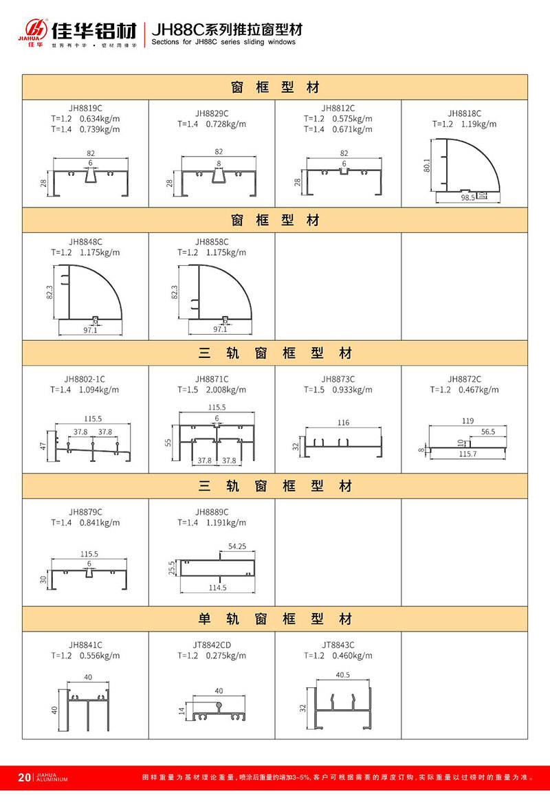 鋁型材規(guī)格型號:JH88C