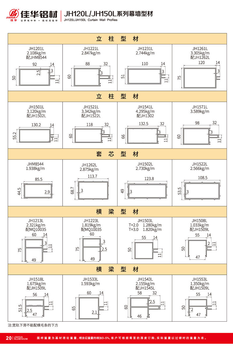 鋁型材規(guī)格型號:JH120L/150L A