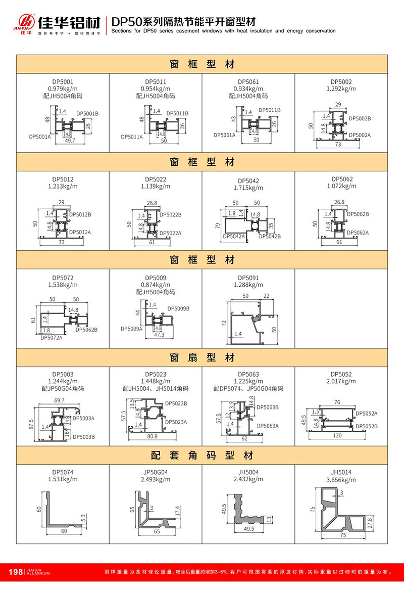 鋁型材規(guī)格型號(hào):DP50平開系列 B
