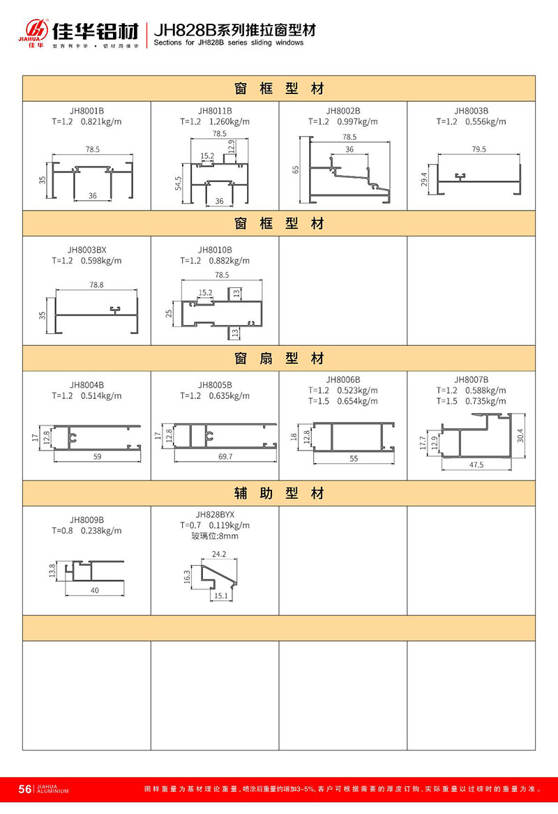 鋁型材規(guī)格型號(hào):JH828B