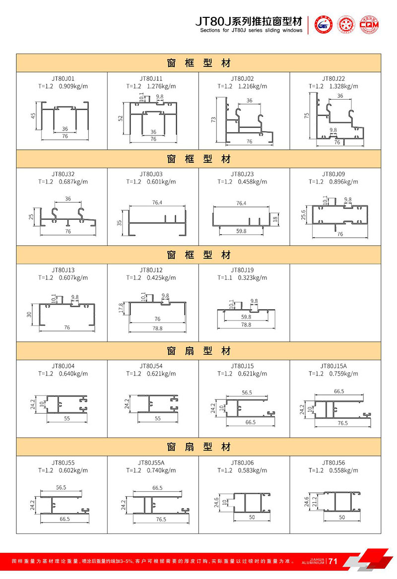 鋁型材規(guī)格型號(hào):JT80J