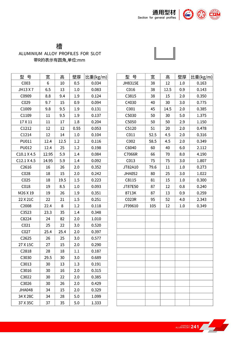 鋁型材規(guī)格型號:槽鋁型材