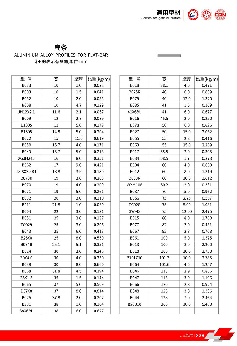 鋁型材規(guī)格型號(hào):扁條型材