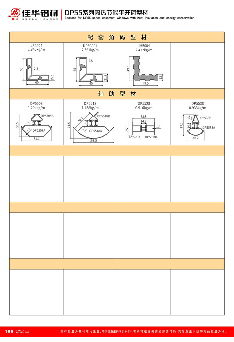 鋁型材規(guī)格型號(hào):DP55平開系列 B
