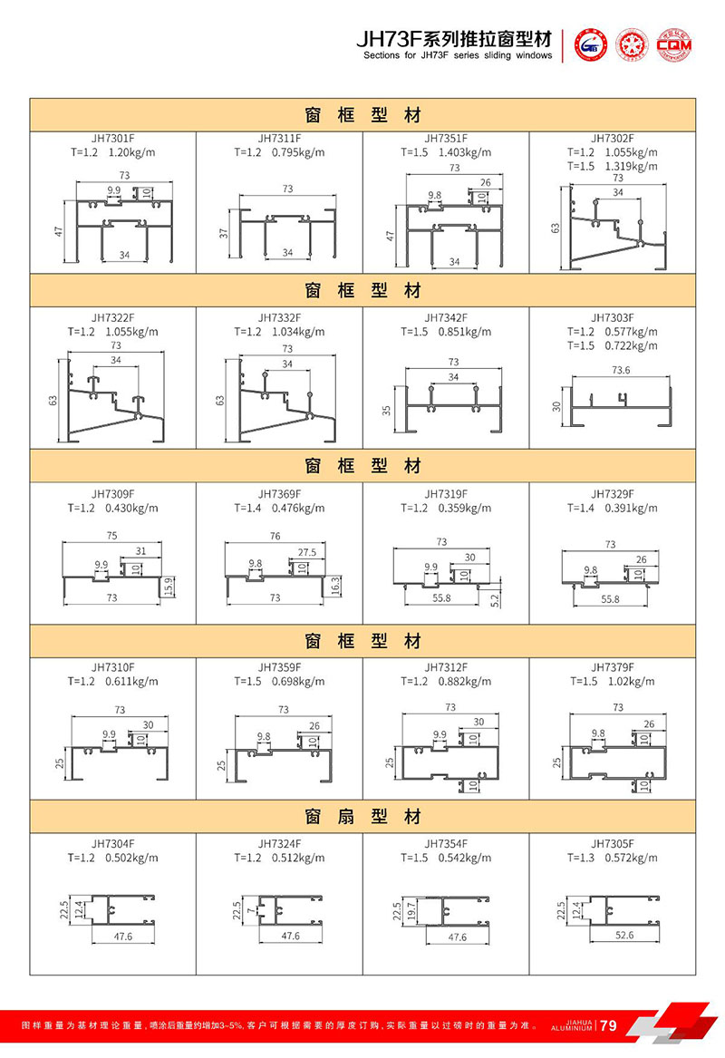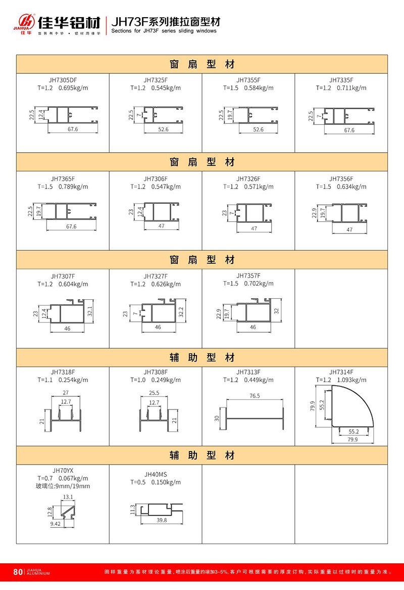 鋁型材規(guī)格型號:JH73F